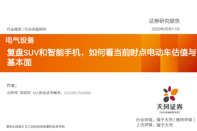 【天风证券】【20200511】复盘SUV和智能手机,如何看当前时点电动车估值与基本面-22页