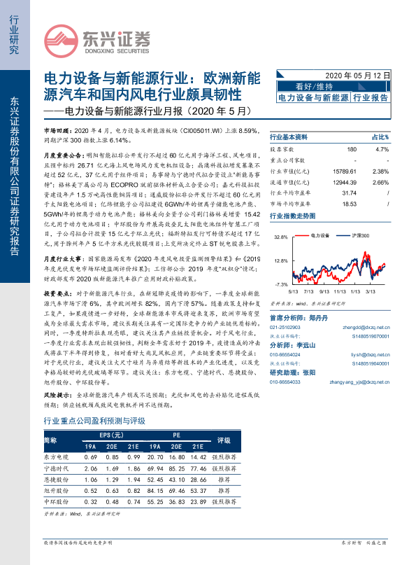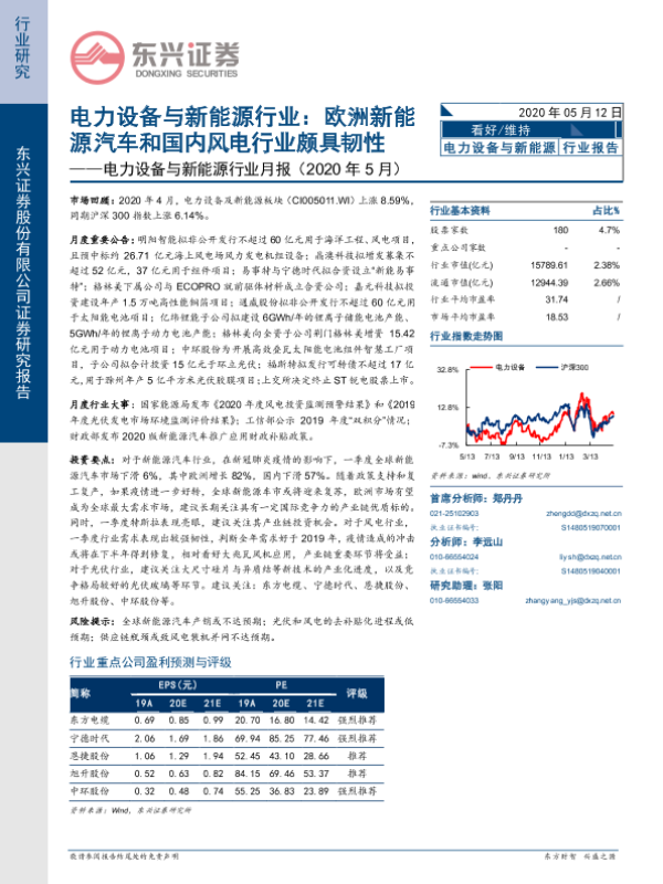 【东兴证券】【20200512】电力设备与新能源行业月报(2020年5月):欧洲新能源汽车和国内风电行业颇具韧性-20页