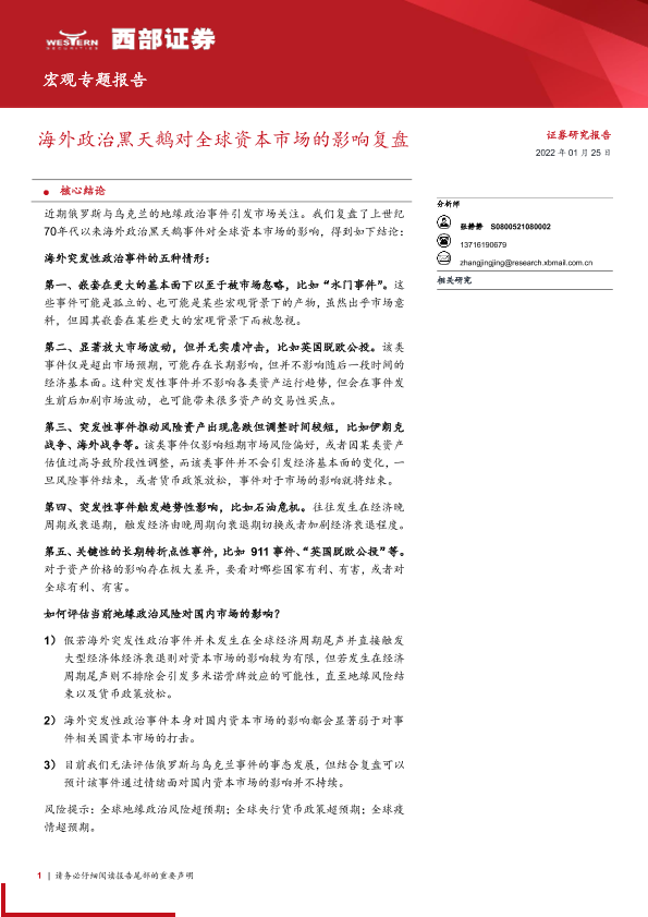 【西部证券】【20220125】海外政治黑天鹅对全球资本市场的影响复盘-16页