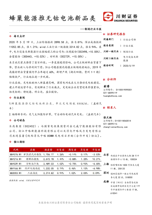 【川财证券】【20200519】制造行业日报:蜂巢能源推无钴电池新品类-3页