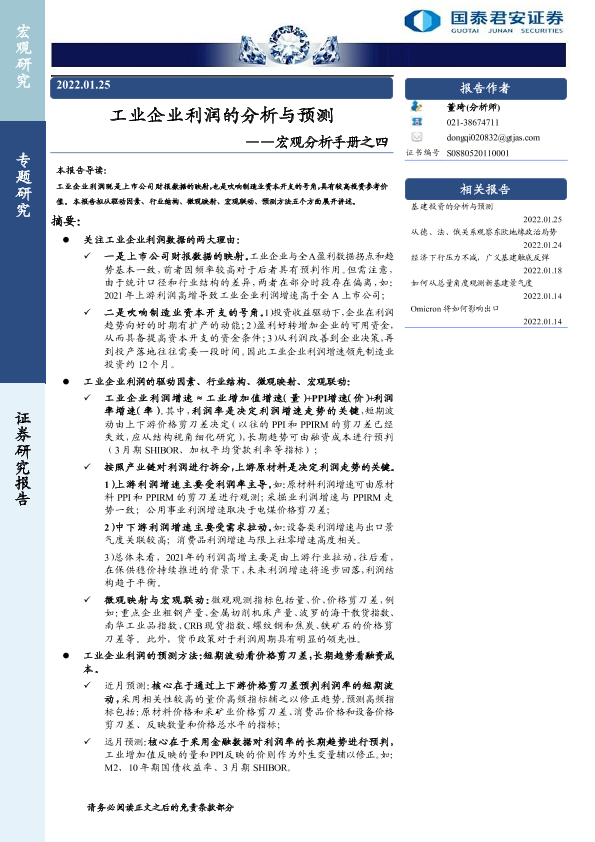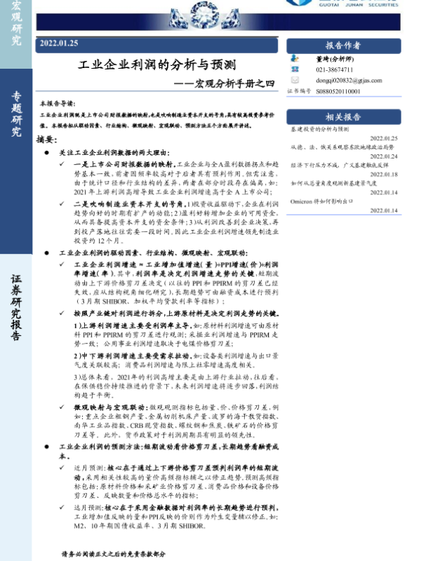 【国泰君安证券】【20220125】工业企业利润的分析与预测-33页