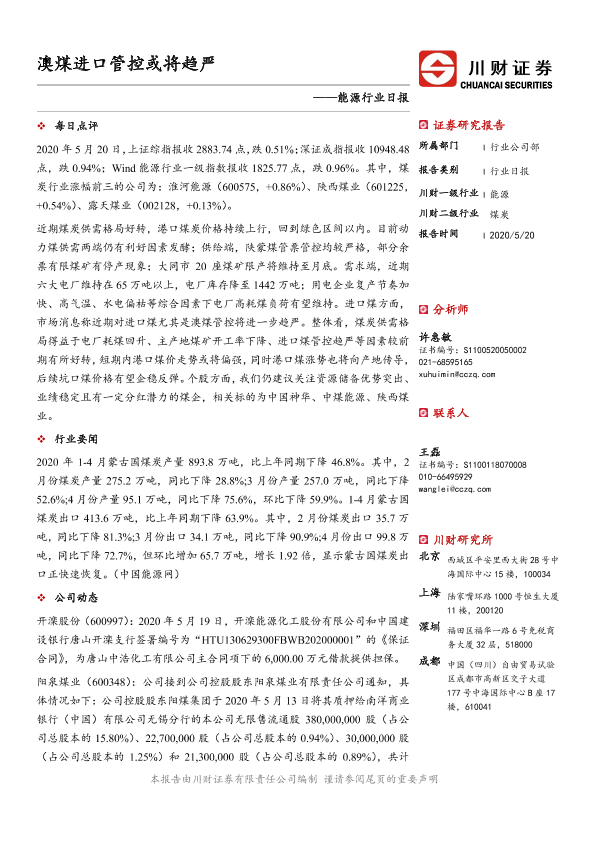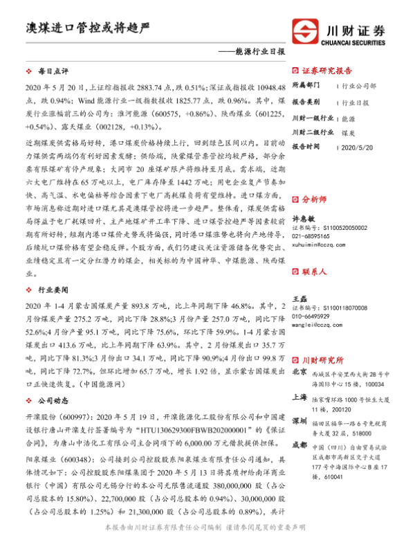 【川财证券】【20200520】能源行业日报:澳煤进口管控或将趋严-3页