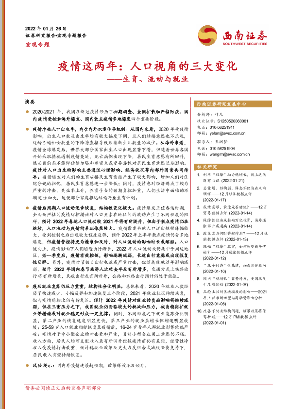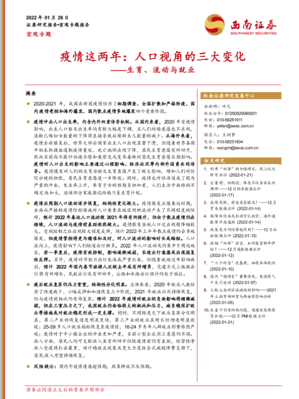 【西南证券】【20220126】疫情这两年:人口视角的三大变化——生育、流动与就业-19页