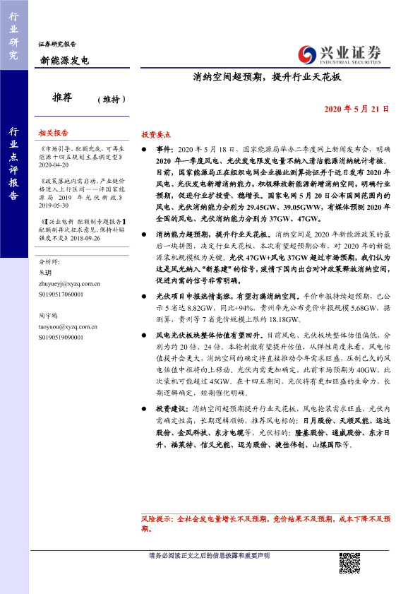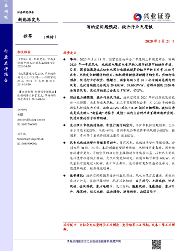 【兴业证券】【20200521】消纳空间超预期,提升行业天花板-7页