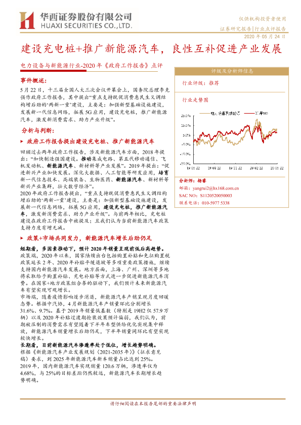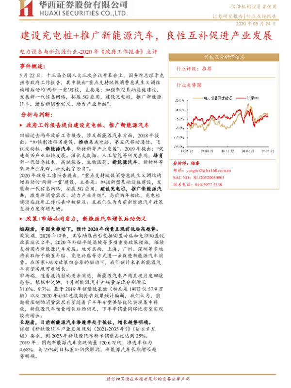 【华西证券】【20200524】2020年《政府工作报告》点评:建设充电桩+推广新能源汽车,良性互补促进产业发展-4页