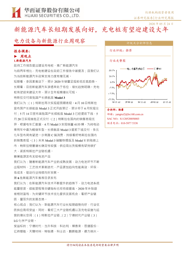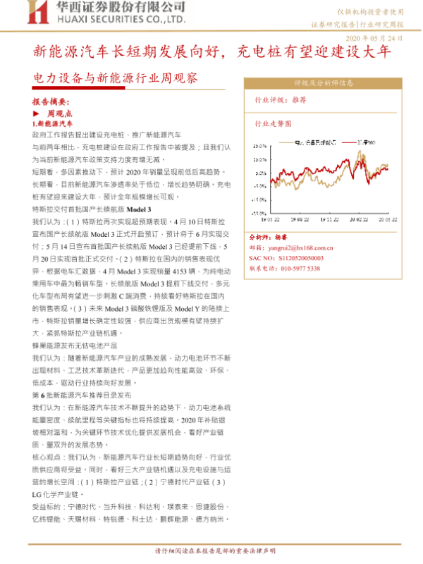 【华西证券】【20200524】电力设备与新能源行业周观察:新能源汽车长短期发展向好,充电桩有望迎建设大年-20页