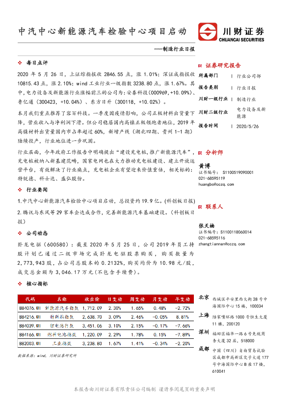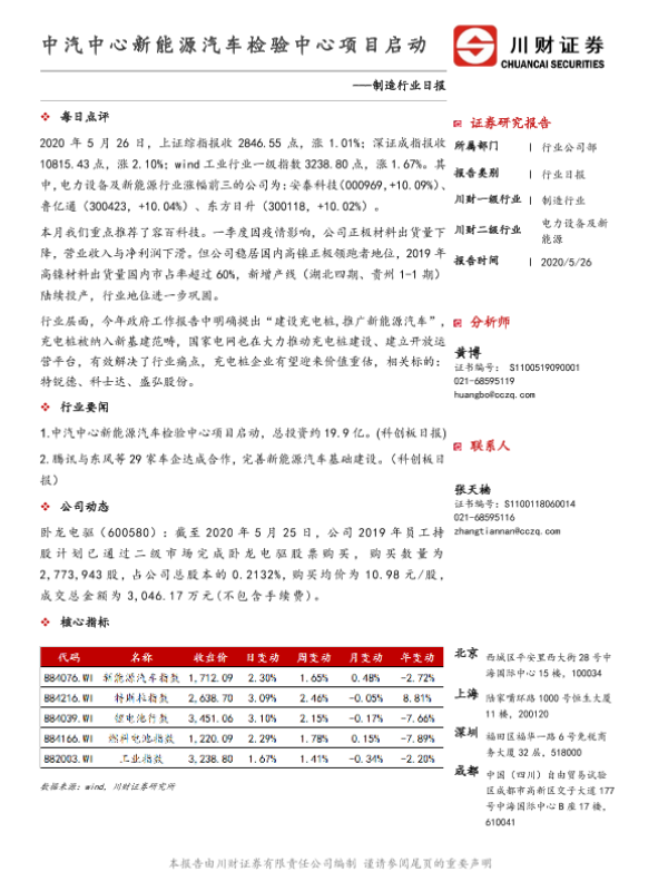 【川财证券】【20200526】制造行业日报:中汽中心新能源汽车检验中心项目启动-3页