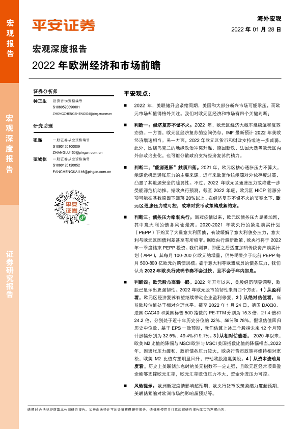 【平安证券】【20220128】2022年欧洲经济和市场前瞻-16页