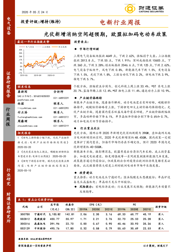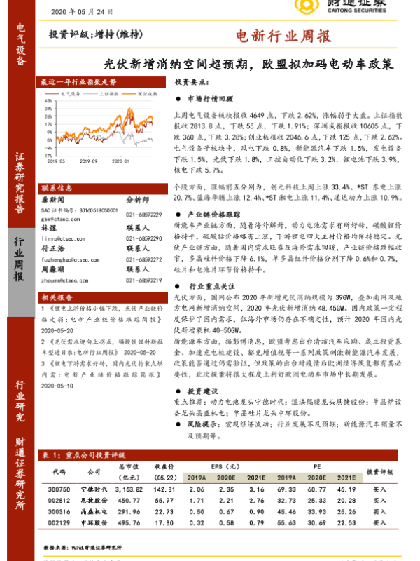 【财通证券】【20200524】电新行业周报:光伏新增消纳空间超预期,欧盟拟加码电动车政策-12页