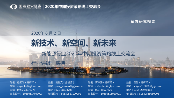 【国泰君安证券】【20200602】新能源行业2020年中期投资策略线上交流会:新技术、新空间、新未来-53页