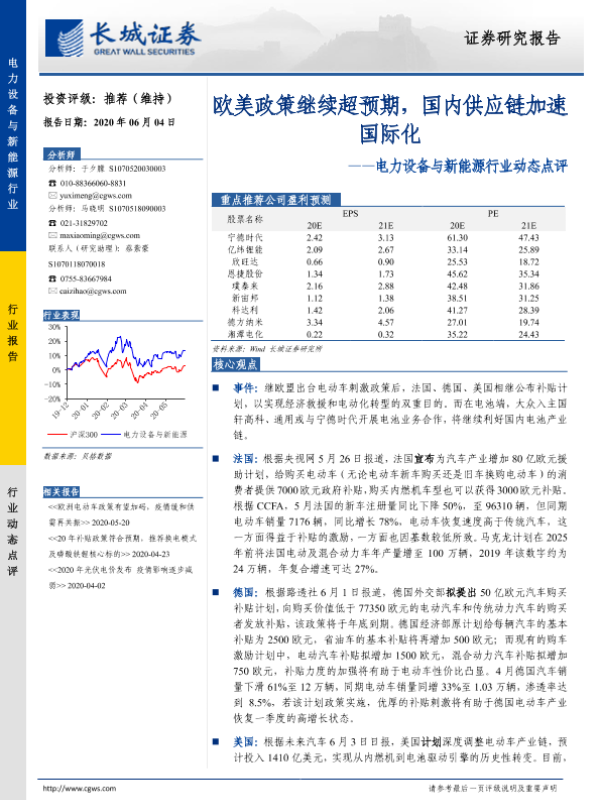 【长城证券】【20200604】电力设备与新能源行业动态点评:欧美政策继续超预期,国内供应链加速国际化-3页