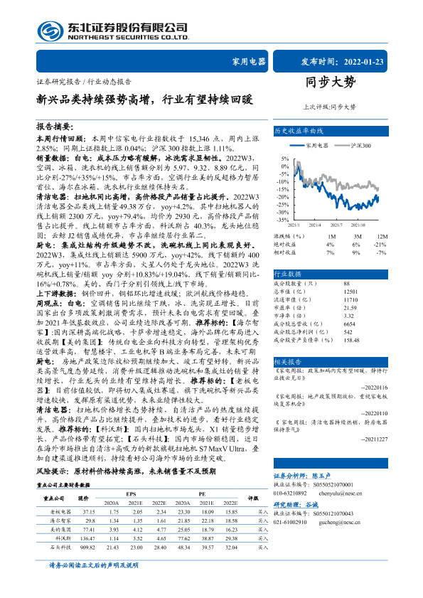 【东北证券】【20220123】家用电器行业动态报告:新兴品类持续强势高增,行业有望持续回暖-16页