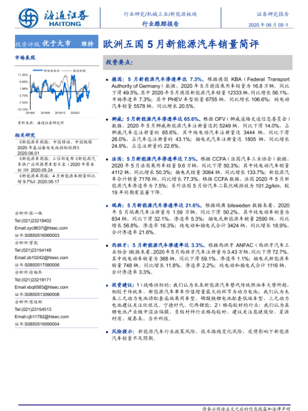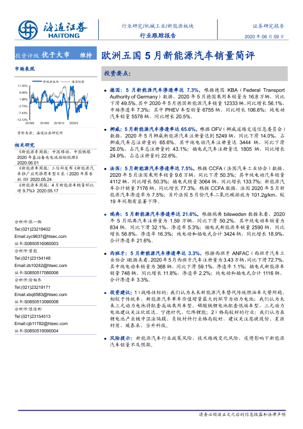 【海通证券】【20200609】欧洲五国5月新能源汽车销量简评-6页