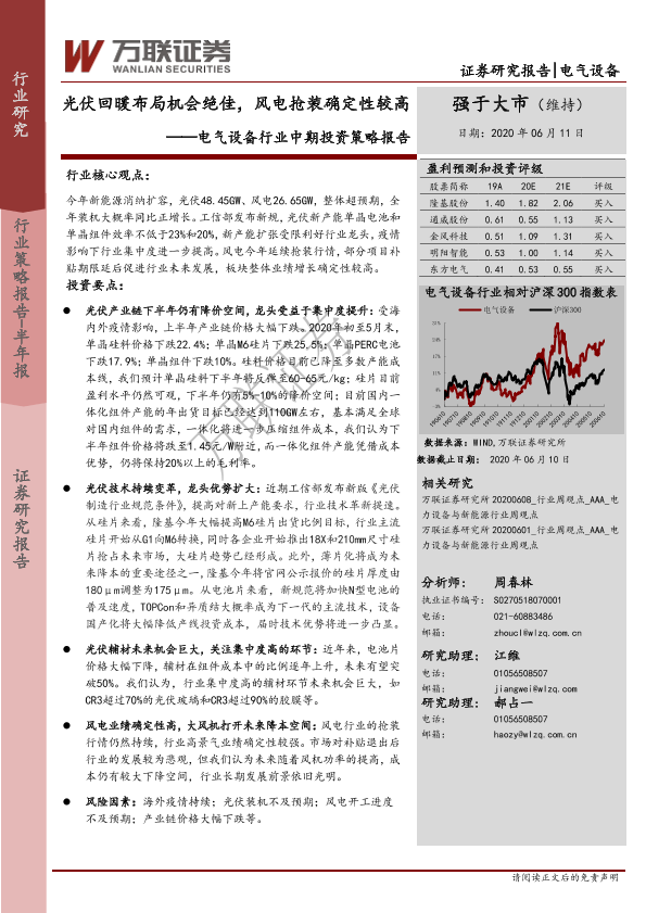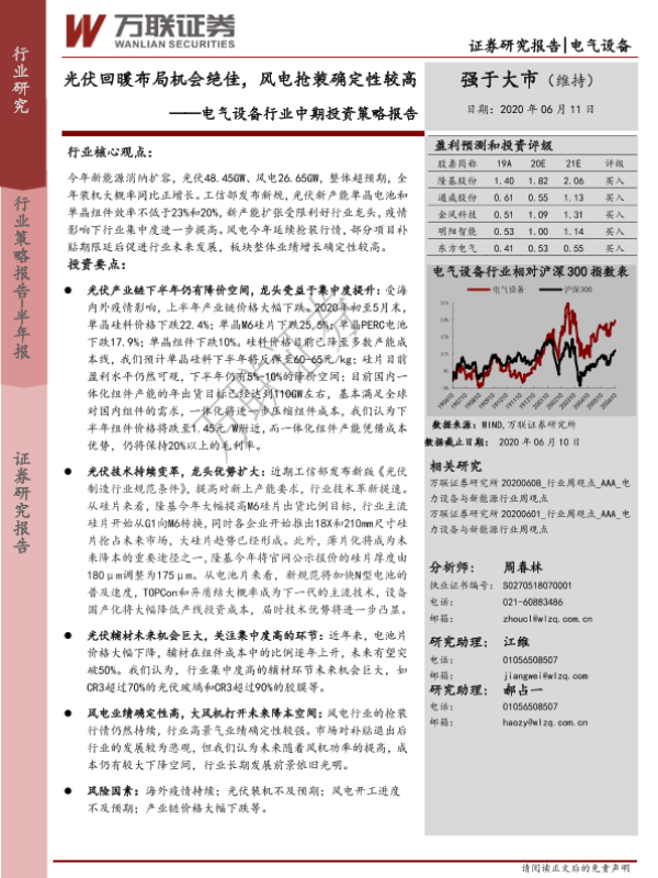 【万联证券】【20200611】20200611-万联证券-电气设备行业中期投资策略报告:光伏回暖布局机会绝佳,风电抢装确定性较高-28页