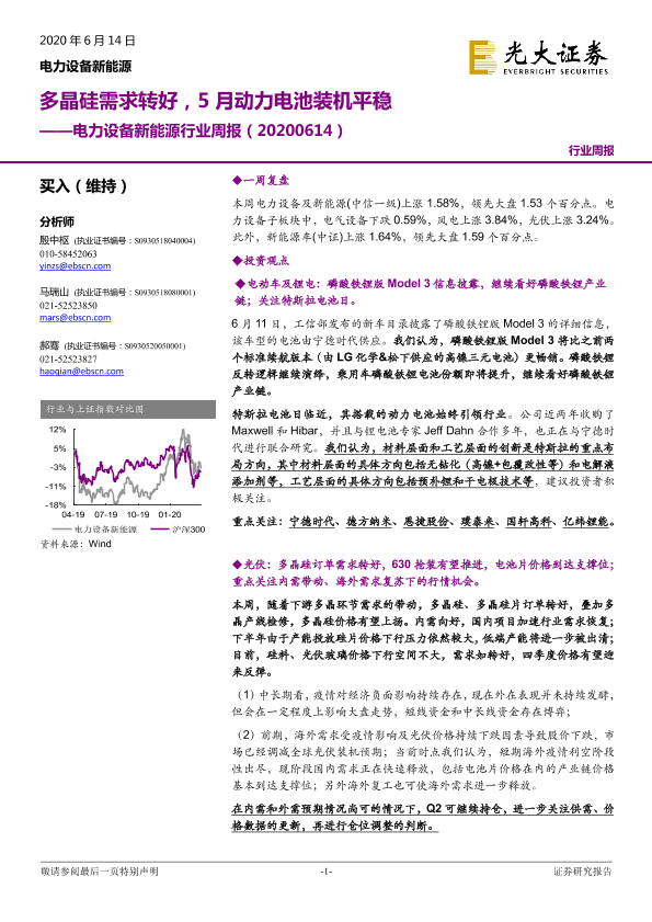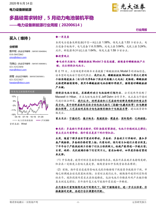 【光大证券】【20200614】电力设备新能源行业周报:多晶硅需求转好,5月动力电池装机平稳-31页