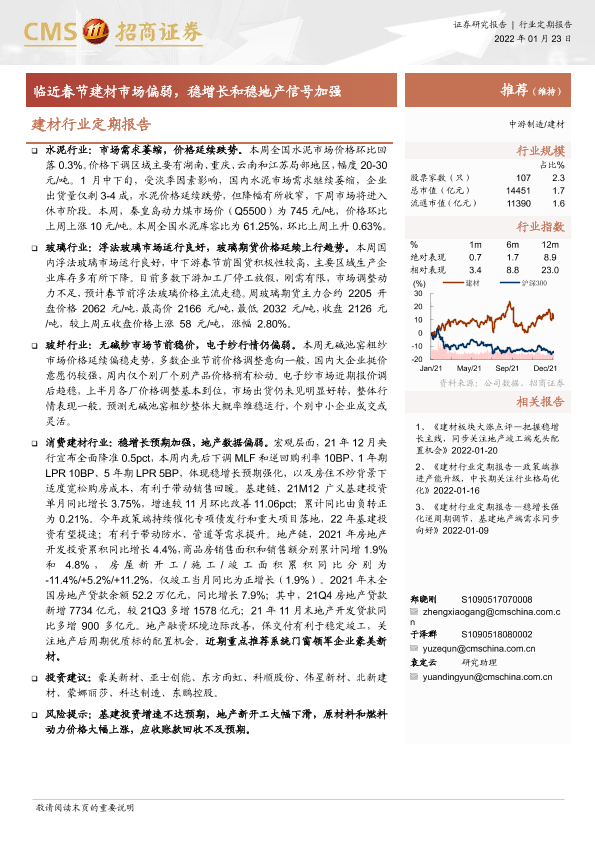 【海通证券】【20220123】建材行业定期报告:临近春节建材市场偏弱,稳增长和稳地产信号加强-19页