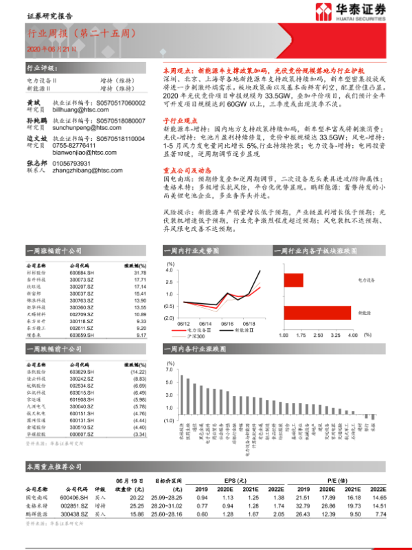 【华泰证券】【20200621】电力设备-新能源行业周报(第二十五周)-14页