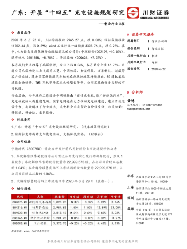 【川财证券】【20200622】制造行业日报:广东:开展“十四五”充电设施规划研究-3页