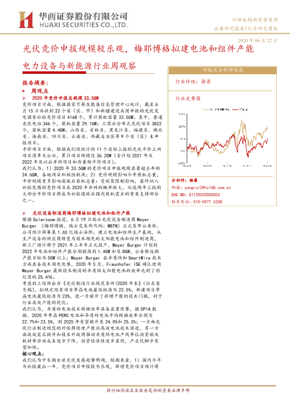 【华西证券】【20200622】电力设备与新能源行业周观察:光伏竞价申报规模较乐观,梅耶博格拟建电池和组件产能-10页