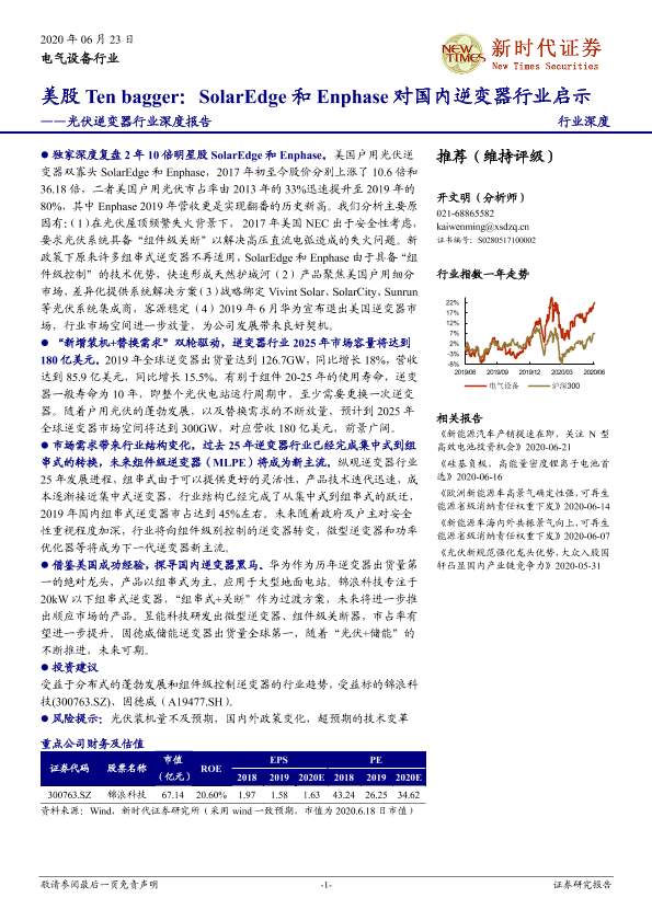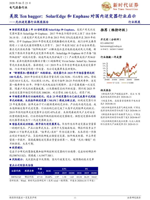 【新时代证券】【20200623】美股Ten bagger:SolarEdge和Enphase对国内逆变器行业启示-32页