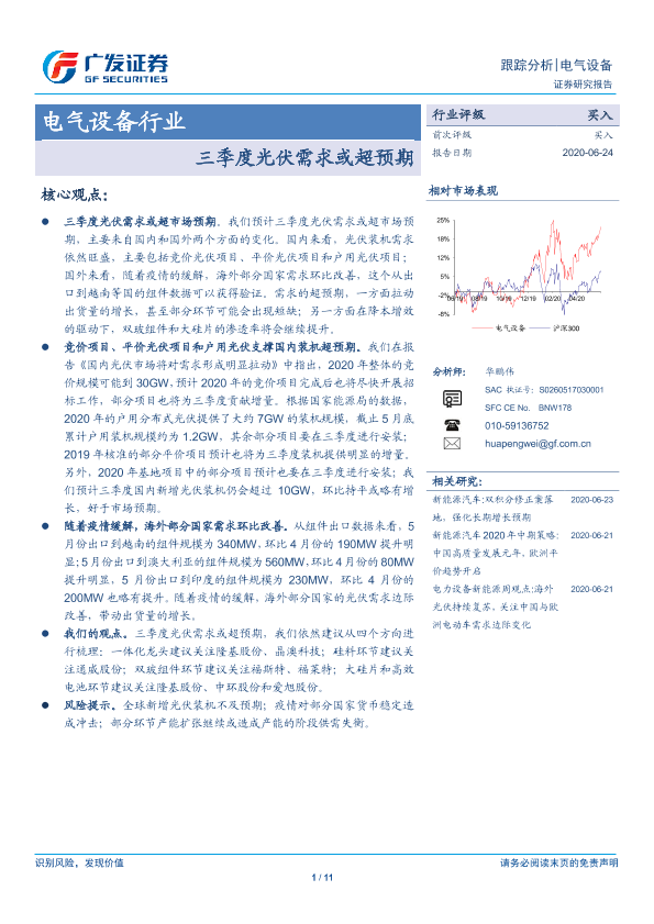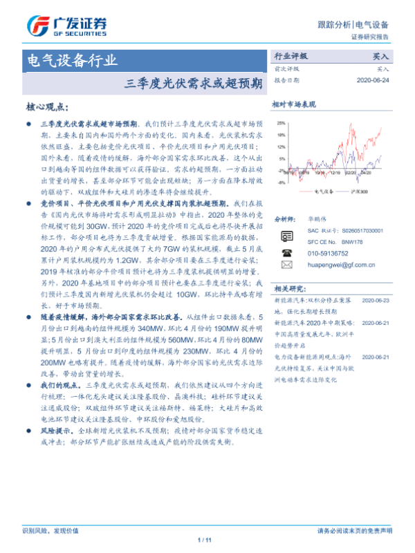 【广发证券】【20200624】电气设备行业:三季度光伏需求或超预期-11页