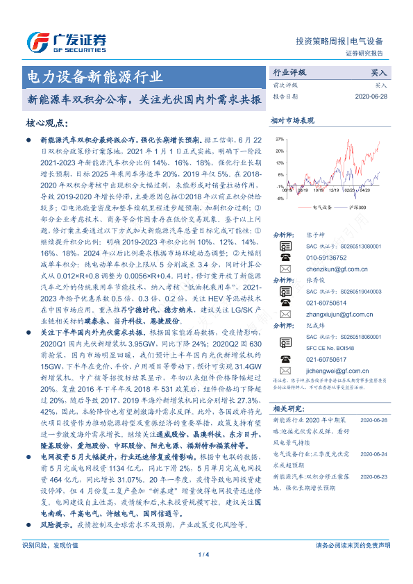 【广发证券】【20200628】电力设备新能源行业投资策略周报:新能源车双积分公布,关注光伏国内外需求共振-4页