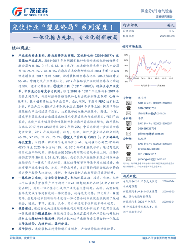 【广发证券】【20200628】光伏行业“望见终局”系列深度 1:一体化抢占先机,专业化创新破局-30页