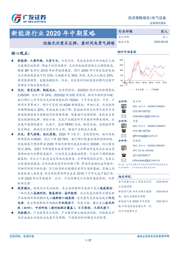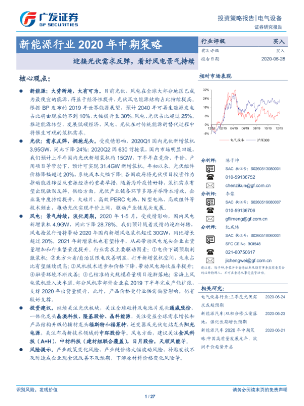 【广发证券】【20200628】新能源行业2020年中期策略:迎接光伏需求反弹,看好风电景气持续-27页