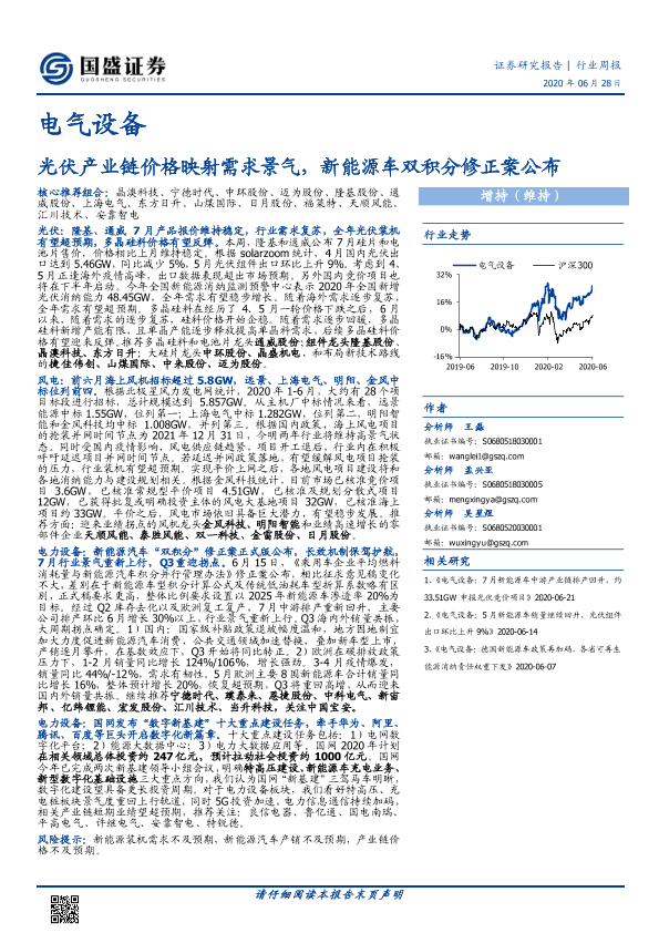 【国盛证券】【20200628】电气设备行业周报:光伏产业链价格映射需求景气,新能源车双积分修正案公布-14页