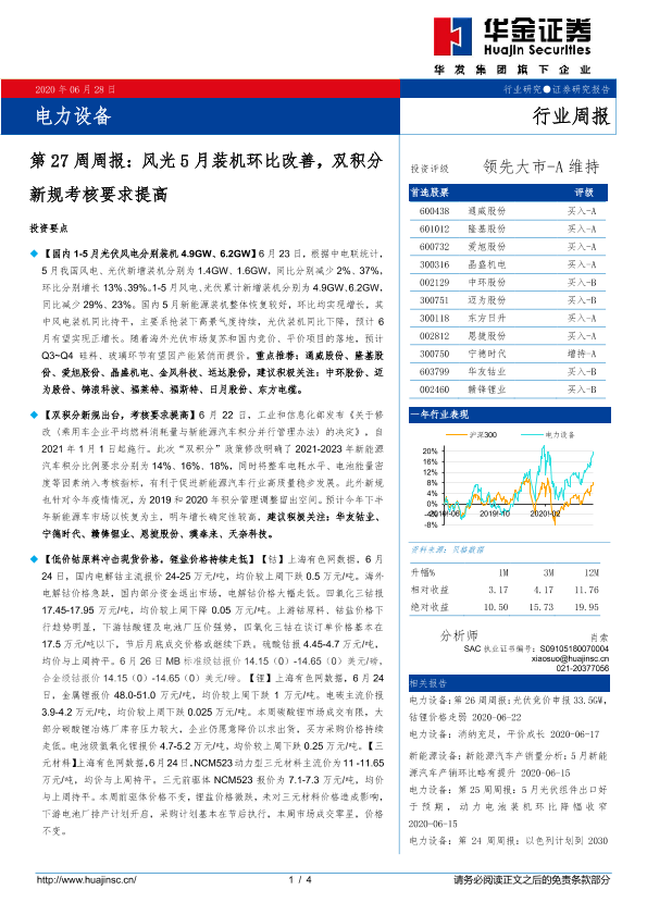 【华金证券】【20200628】电力设备第27周周报:风光5月装机环比改善,双积分新规考核要求提高-4页