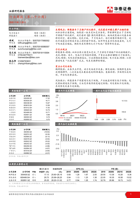 【华泰证券】【20200628】20200628-华泰证券-电力设备与新能源行业周报(第二十六周)-14页