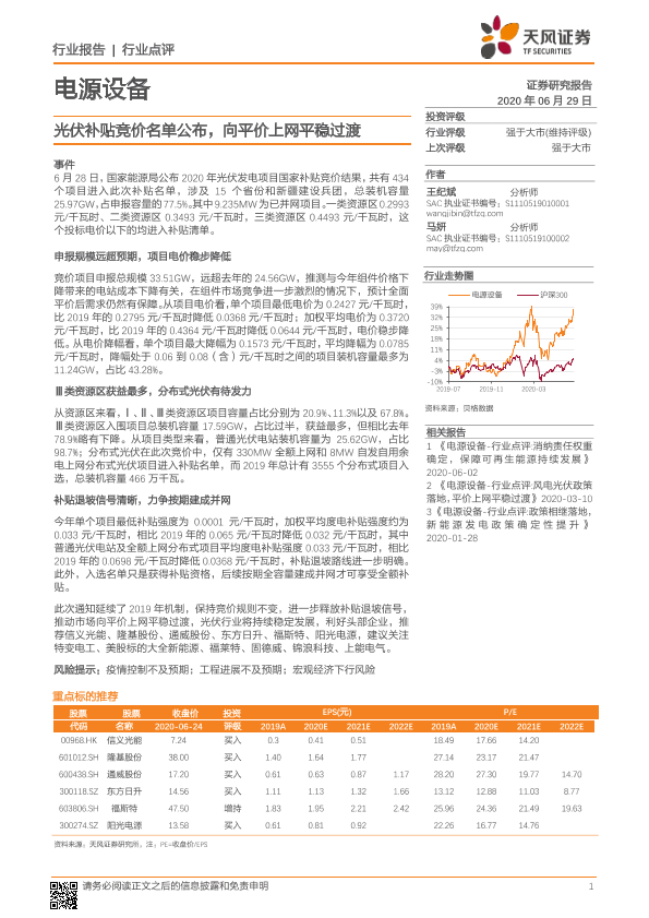 【天风证券】【20200629】光伏补贴竞价名单公布,向平价上网平稳过渡-2页