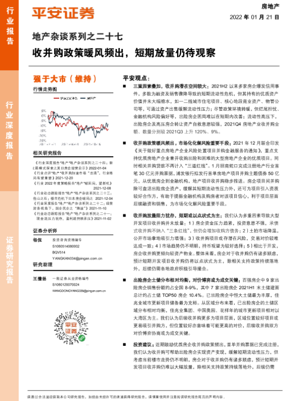 【平安证券】【20220121】房地产行业地产杂谈系列之二十七:收并购政策暖风频出,短期放量仍待观察-18页