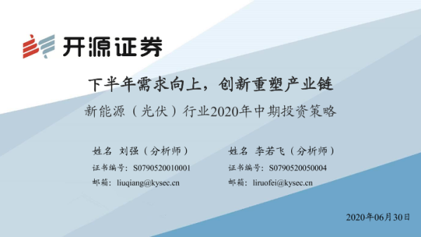 【开源证券】【20200630】新能源(光伏)行业2020年中期投资策略:下半年需求向上,创新重塑产业链-32页