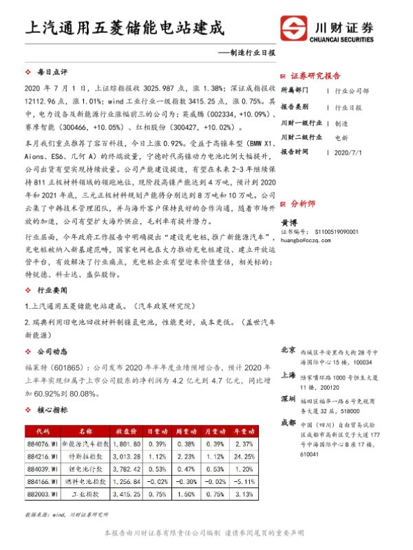 【川财证券】【20200701】制造行业日报:上汽通用五菱储能电站建成-3页