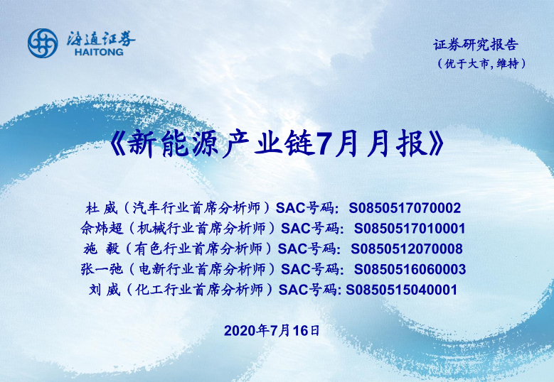 【海通证券】【20200716】新能源产业链7月月报-24页