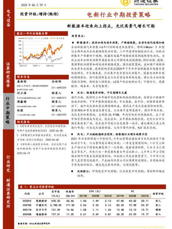 【财通证券】【20200629】20200629-财通证券-电新行业中期投资策略:新能源车迎来向上拐点,光伏高景气增长可期-49页