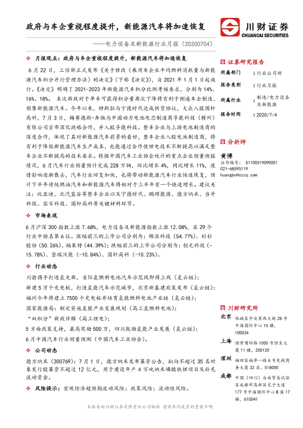 【川财证券】【20200704】电力设备及新能源行业月报:政府与车企重视程度提升,新能源汽车将加速恢复-20页