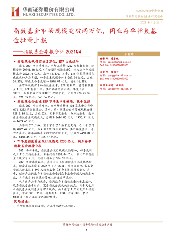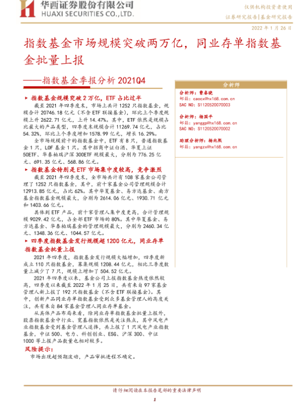 【华西证券】【20220126】指数基金季报分析2021Q4:指数基金市场规模突破两万亿,同业存单指数基金批量上报-17页
