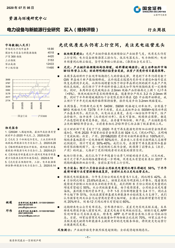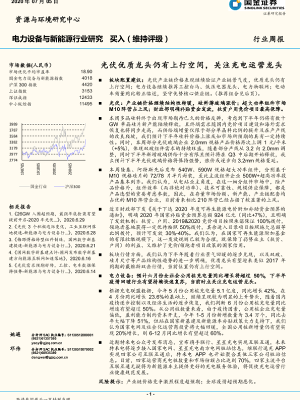 【国金证券】【20200705】电力设备与新能源行业研究:光伏优质龙头仍有上行空间,关注充电运营龙头-4页