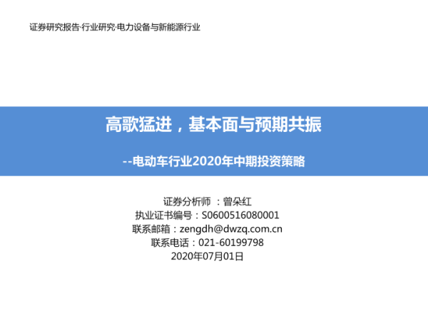 【东吴证券】【20200701】高歌猛进,基本面与预期共振--电动车行业2020年中期投资策略-77页