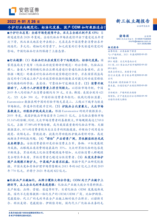 【安信证券】【20220126】新三板主题报告:个护行业向规范化、标准化发展,国产ODM如何乘胜追击?-37页