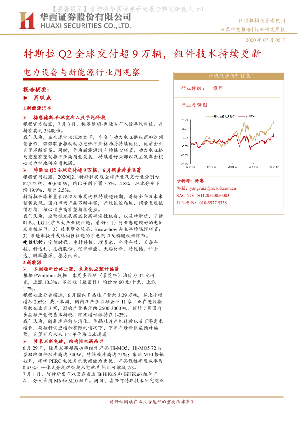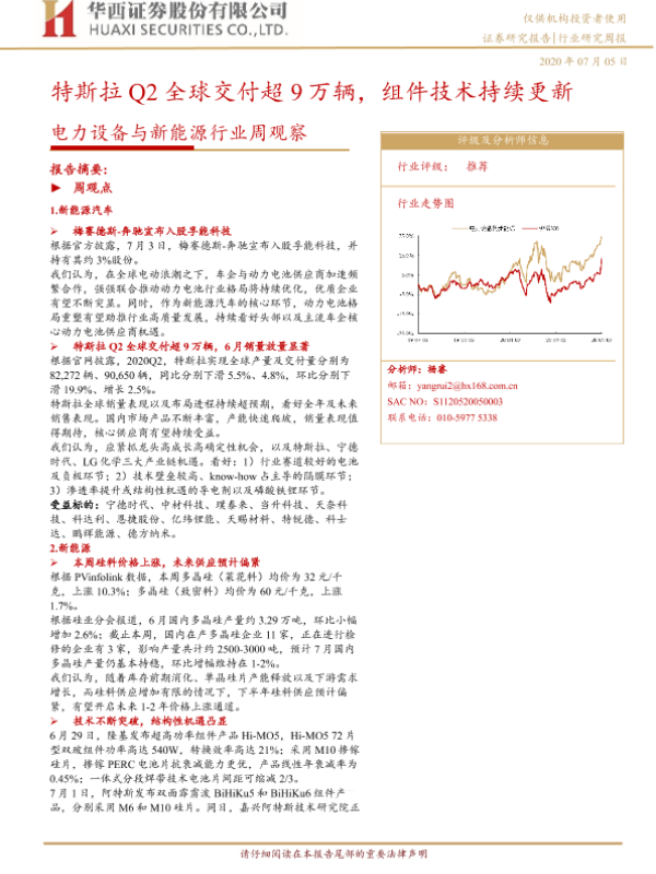【华西证券】【20200705】电力设备与新能源行业周观察:特斯拉Q2全球交付超9万辆,组件技术持续更新-16页