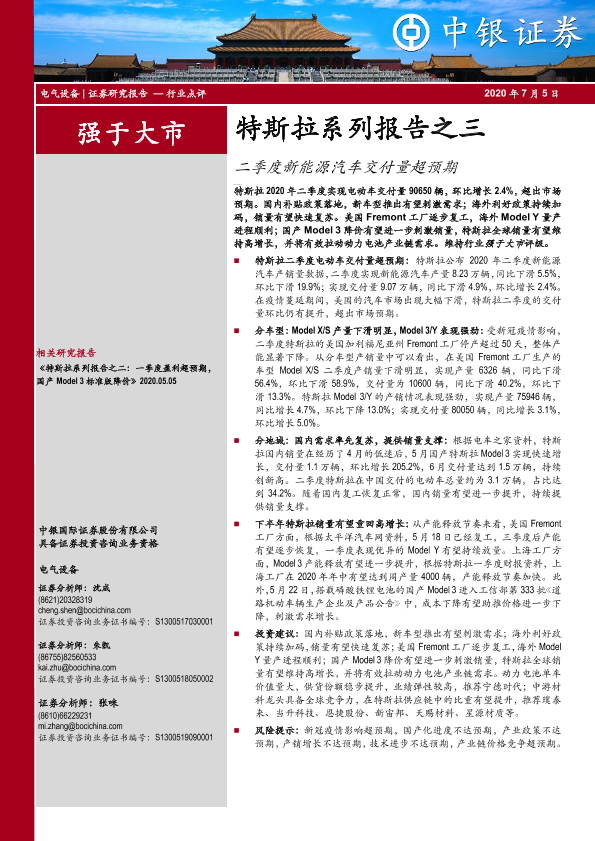 【中银证券】【20200705】特斯拉系列报告之三-二季度新能源汽车交付量超预期-5页