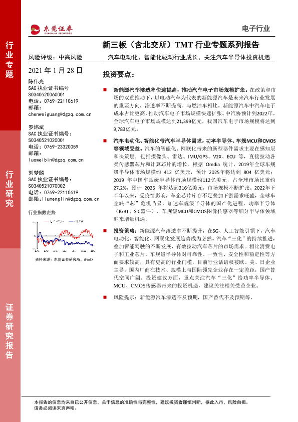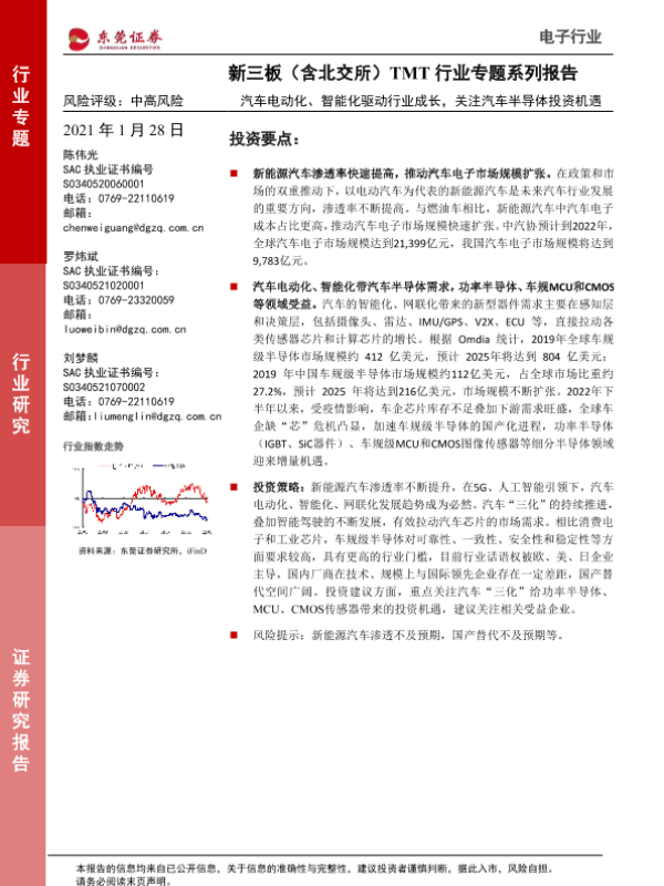【东莞证券】【20220128】新三板(含北交所)TMT行业专题系列报告:汽车电动化、智能化驱动行业成长,关注汽车半导体投资机遇-27页