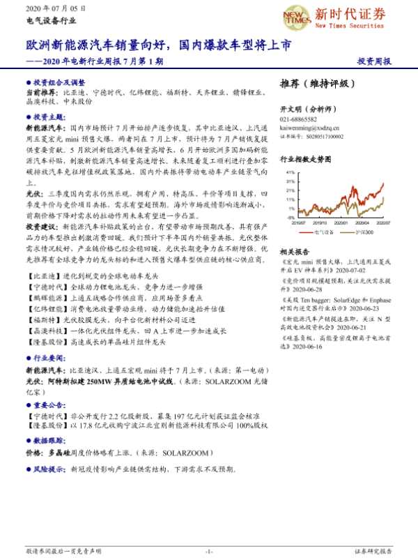 【新时代证券】【20200705】2020年电新行业周报7月第1期:欧洲新能源汽车销量向好,国内爆款车型将上市-13页