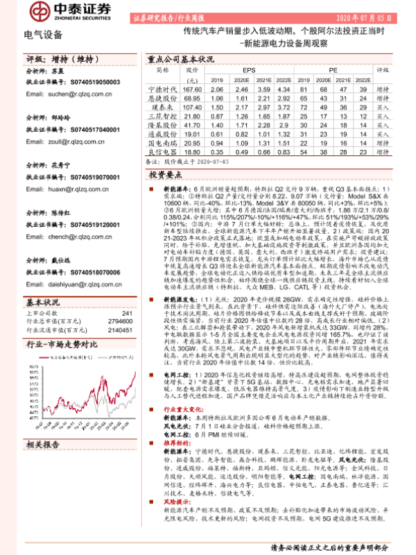 【中泰证券】【20200705】传统汽车产销量步入低波动期,个股阿尔法投资正当时 -新能源电力设备周观察-18页