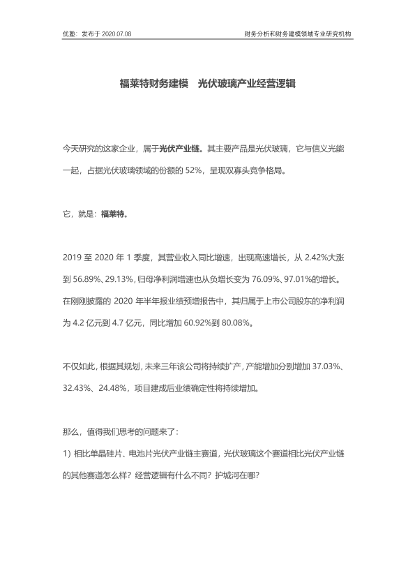 【优塾】【20200708】20200708-并购优塾-光伏产业:福莱特财务建模 光伏玻璃产业经营逻辑-47页