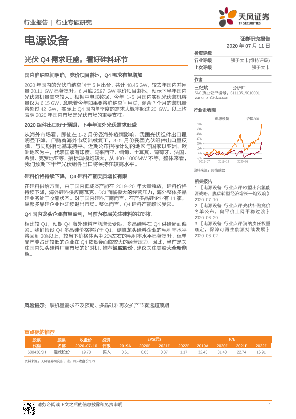 【天风证券】【20200711】电源设备行业专题研究:光伏Q4需求旺盛,看好硅料环节-7页