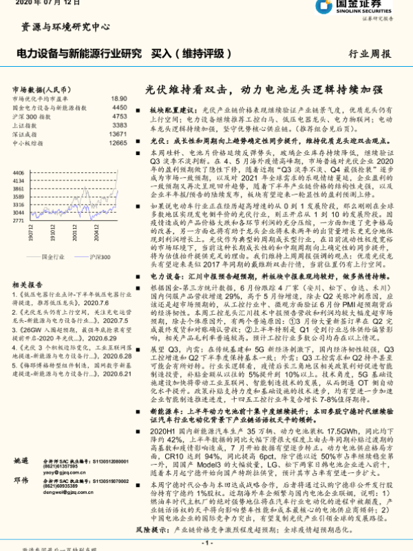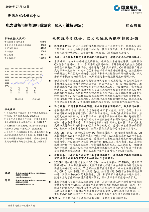【国金证券】【20200712】电力设备与新能源行业研究:光伏维持看双击,动力电池龙头逻辑持续加强-4页
